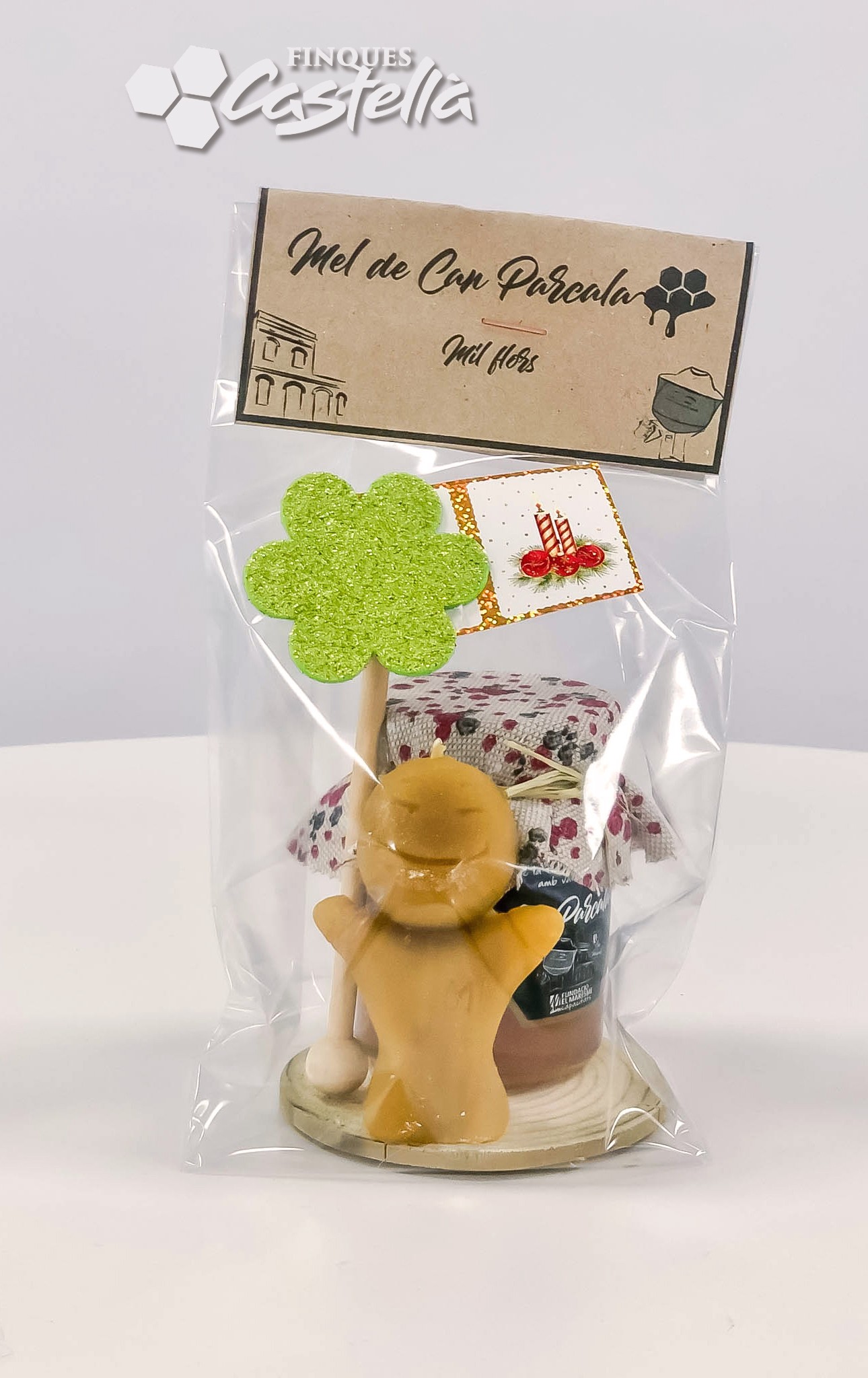 Ens il·lusiona, i molt!, que ens demanin comandes personalitzades com les de Finques Castellà: 250 lots de Mel de Can Parcala amb compromís social preparats a mida, amb targetó, cullera de fusta i espelma d’en Santi per endolcir el Nadal amb salut, proximitat i solidaritat.