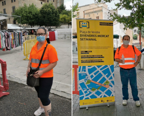 DUES PERSONES DEL CEO DEL MARESME CONTROLEN L’ACCESSIBILITAT D’UN DELS MERCATS MUNICIPALS D’ARGENTONA